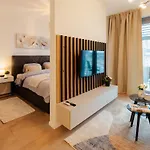 Bnb Metropolis Downtown Apartment Garage Parking ferielejlighed tilbyder overnatning som er placeret i førsteklasses område tæt på divadlo LUDUS. Indkvarteringen er og byder på et fuldt udstyret køkken med alle nødvendige redskaber til at tilberede måltider.